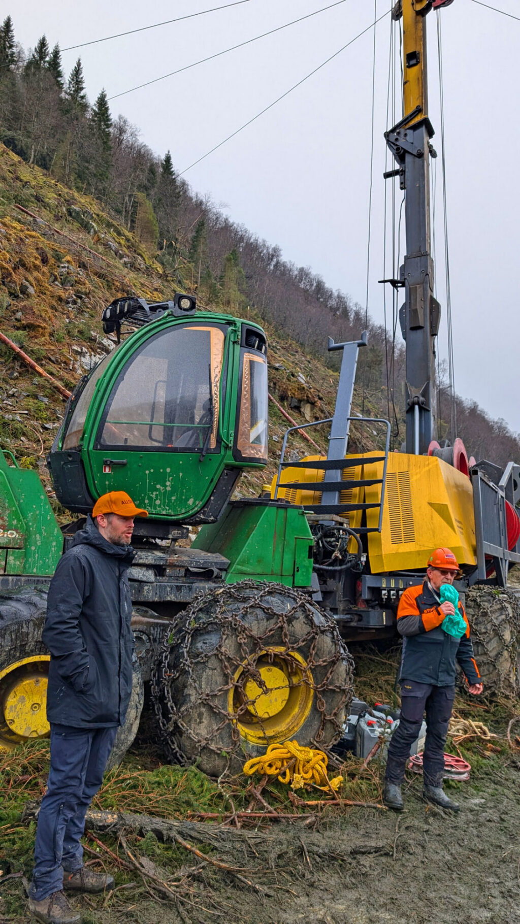 Forsamlinga var tydeleg imponert over taubana og mannskapet til Frank Terje Rørvik i firma Rørvik Taubanedrift AS. Det er rett nok Grethe Marie Rørvik, mor til Frank Terje, som er eigar av firma og Frank Terje er dagleg leiar. Som vi tidlegare har skrive om på denne nettstaden, er Rørvik Taubanedrift AS det selskapet som har drive fram mest tømmer med taubane her i landet. Frank Terje fortel at det er i Møre og Romsdal at selskapet har drive lengst. – Ja det er nok snakk om ein stad mellom 3 og 400 000 kubikkmeter tømmer som er drive fram med taubane gjennom deira selskap i dette fylket, legg han til.