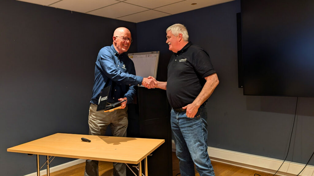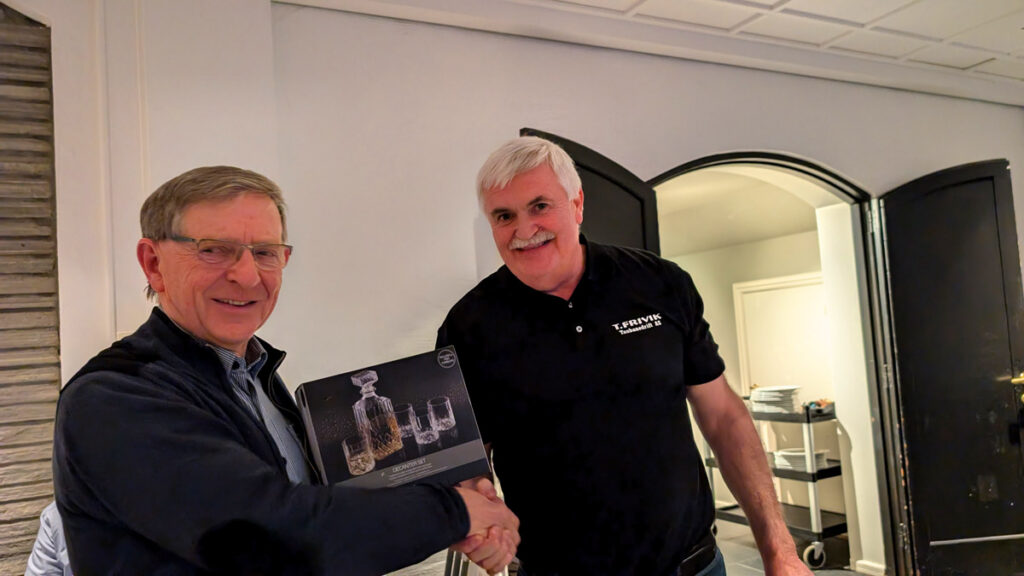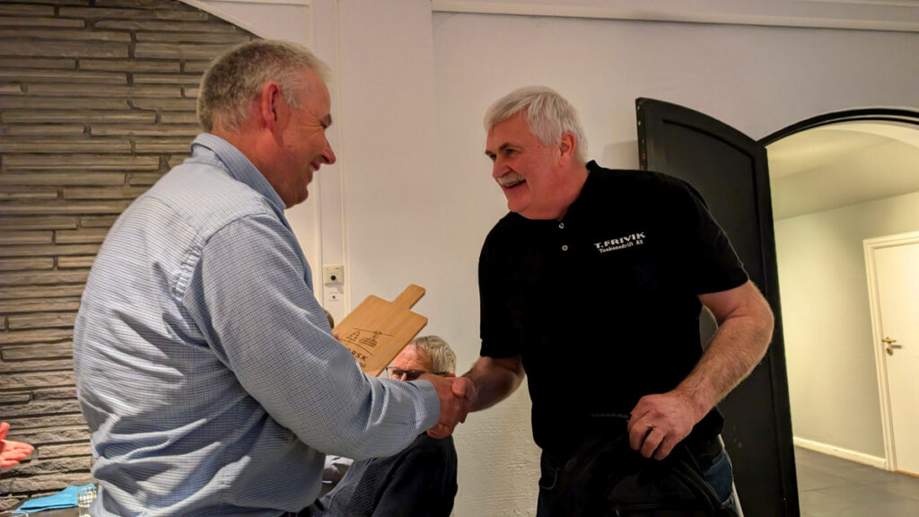 Han sette stor pris på Skjerefjøla tildelt av leiar Torbjørn Frivik. Presentasjonen til Bjørn ligg også under bildereprotasjen.