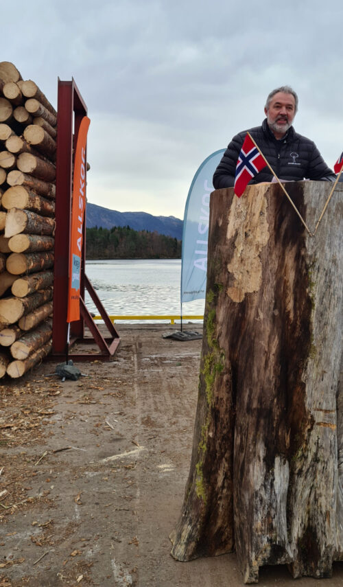 Fredag 03. november fikk stortingsrepresentant Sylvi Listhaug, «tømmerkaiprogrammets mor» det ærefulle oppdraget med å kappe tømmerstokken som markerte åpninga av ALLSKOGs Håem Tømmerkai.