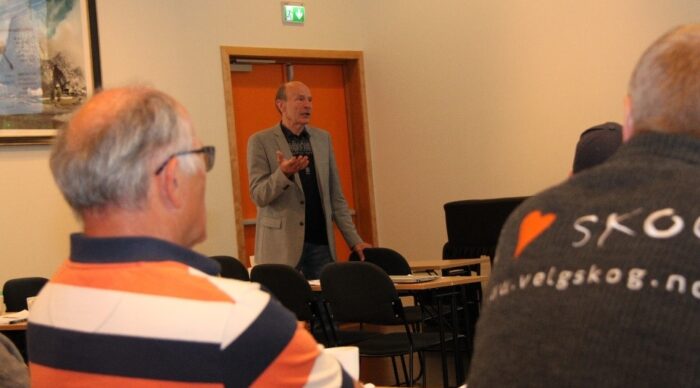 “Før kom dei hit for å klage. No er alle positive og stadig fleire vil ha kunnskap om skogbruk” seier Arnt Laukeland. Han er kurshaldar…