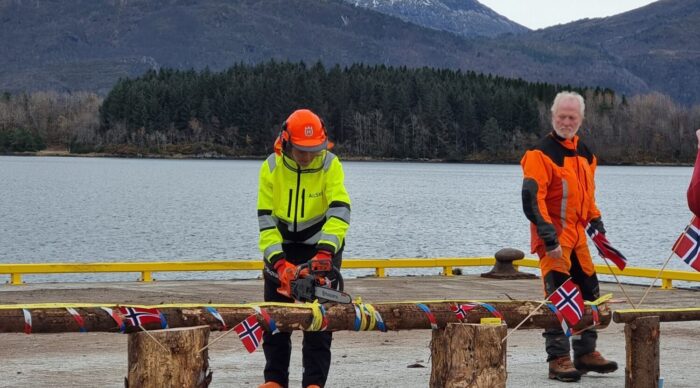 Fredag 03. november fikk stortingsrepresentant Sylvi Listhaug, «tømmerkaiprogrammets mor» det ærefulle oppdraget med å kappe tømmerstokken som markerte åpninga av ALLSKOGs Håem Tømmerkai.